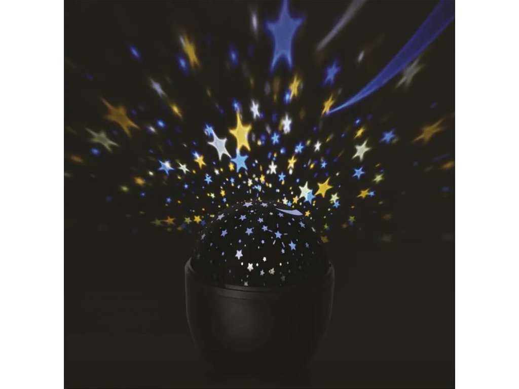 Projektor lze napájet 3× AA bateriemi nebo USB adaptérem, takže jeho použití je maximálně bezpečné, flexibilní a bez nutnosti řešit přívodní kabely. Rotující světelný efekt dodává hvězdičkám jemný pohyb připomínající noční oblohu, která děti uklidní a zpříjemní jim usínání.