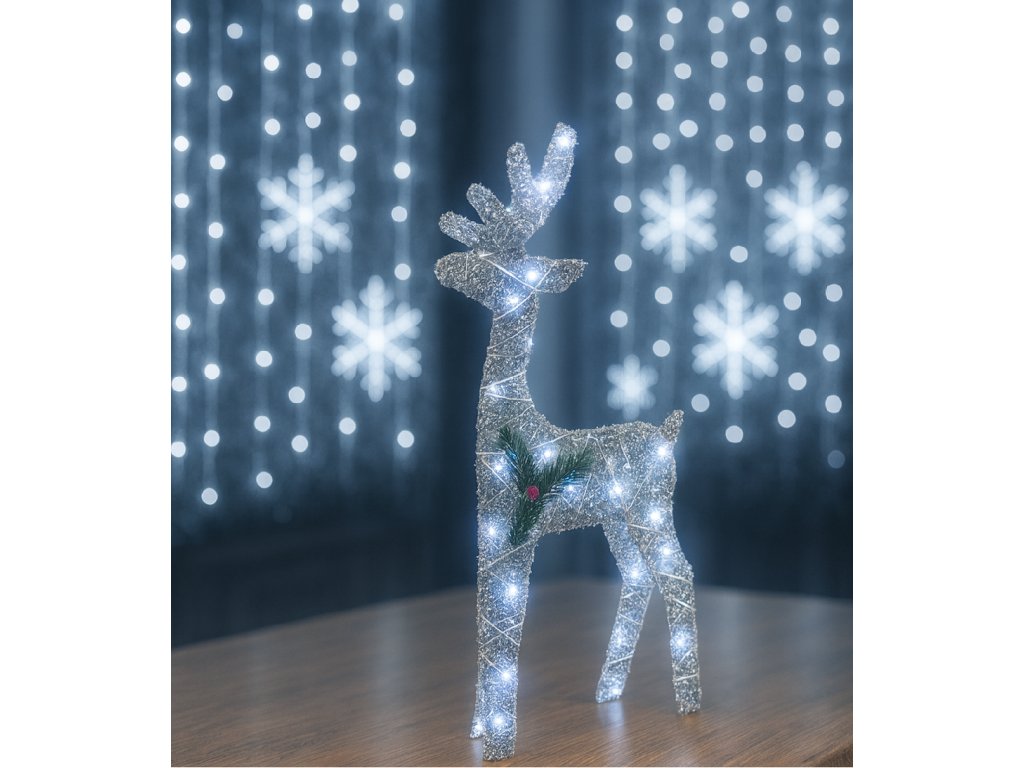 LED světelný dekorační sob, 53cm, studená bílá, stříbrný vzhled