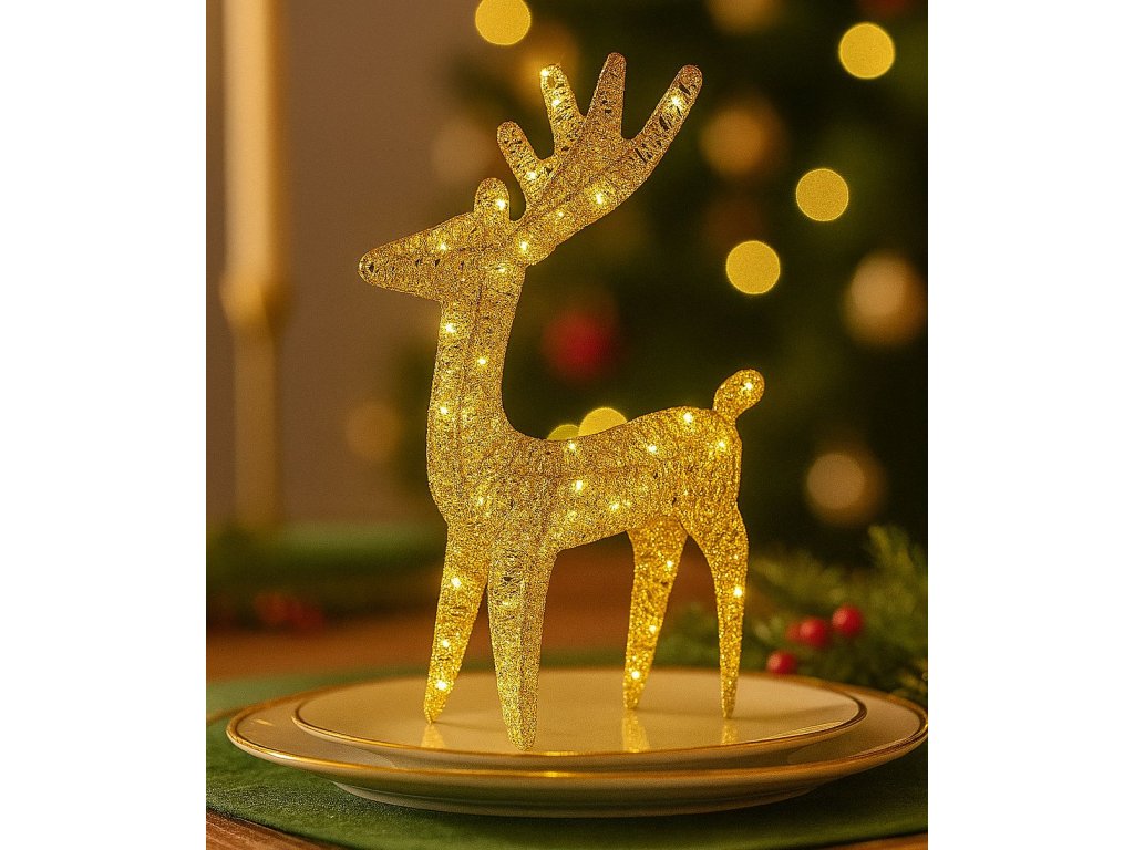 Tento LED svítící sob je zářící zimní ozdobou, která přináší do vašeho domova teplou bílou magii. Jeho elegantní drátěný design je k dispozici v různých velikostech, aby perfektně ladil s vaším prostředím. Stačí jej jednoduše zapojit do zásuvky a okamžitě rozjasní vaše prostory, vytvářejíc úchvatnou vánoční atmosféru.