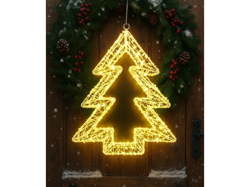 Tento svítící vánoční stromek, 45 cm, teplá bílá je ideální dekorací na vchodové dveře, okna nebo stěnu. Díky výšce 45 cm působí elegantně, přesto dostatečně výrazně, aby vynikl i na větší ploše. Stromek je vyroben z pevné plastové konstrukce omotané mikro LED řetězem se zalitými diodami, které vyzařují příjemné teplé bílé světlo a zajišťují dlouhou životnost.