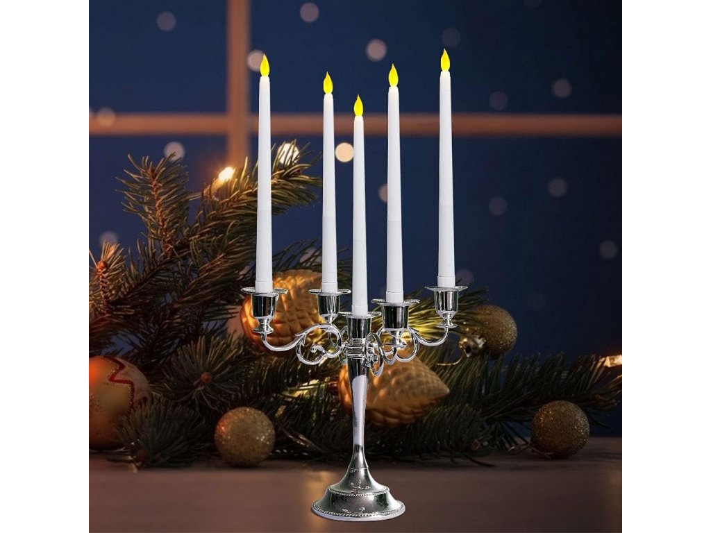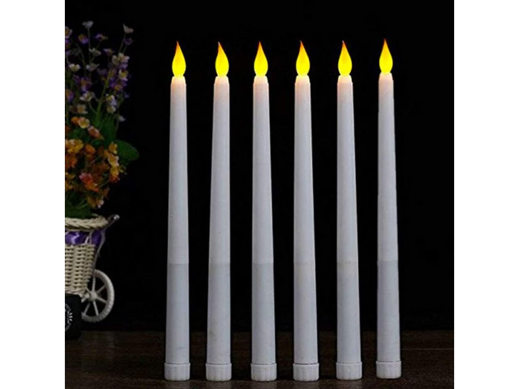 Sada LED svíček obsahuje 6 kusů svíček s teplým bílým světlem. Každá svíčka má výšku 27,5 cm a je napájena dvěma bateriemi typu AA, které nejsou součástí balení. Tato sada vytváří bezpečný a pohodlný svícení pro dekoraci a atmosféru.