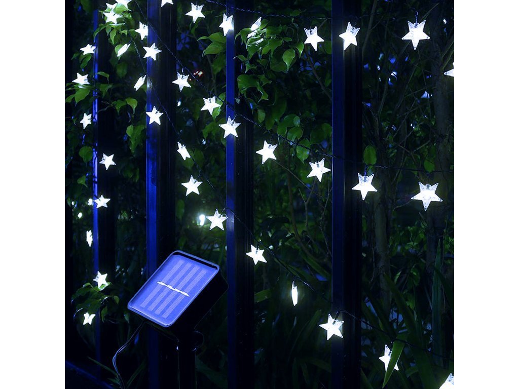 Solární vánoční řetěz s hvězdičkami, studená bílá, 5m, 30 LED