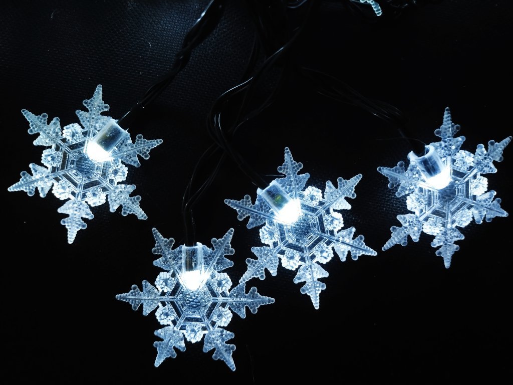 Solární vánoční řetěz s velkými sněhovými vločkami, studená bílá, 5m, 30 LED