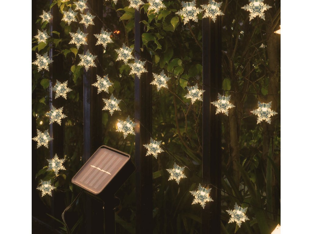 Solární vánoční řetěz s velkými sněhovými vločkami, teplá bílá, 5m, 30 LED