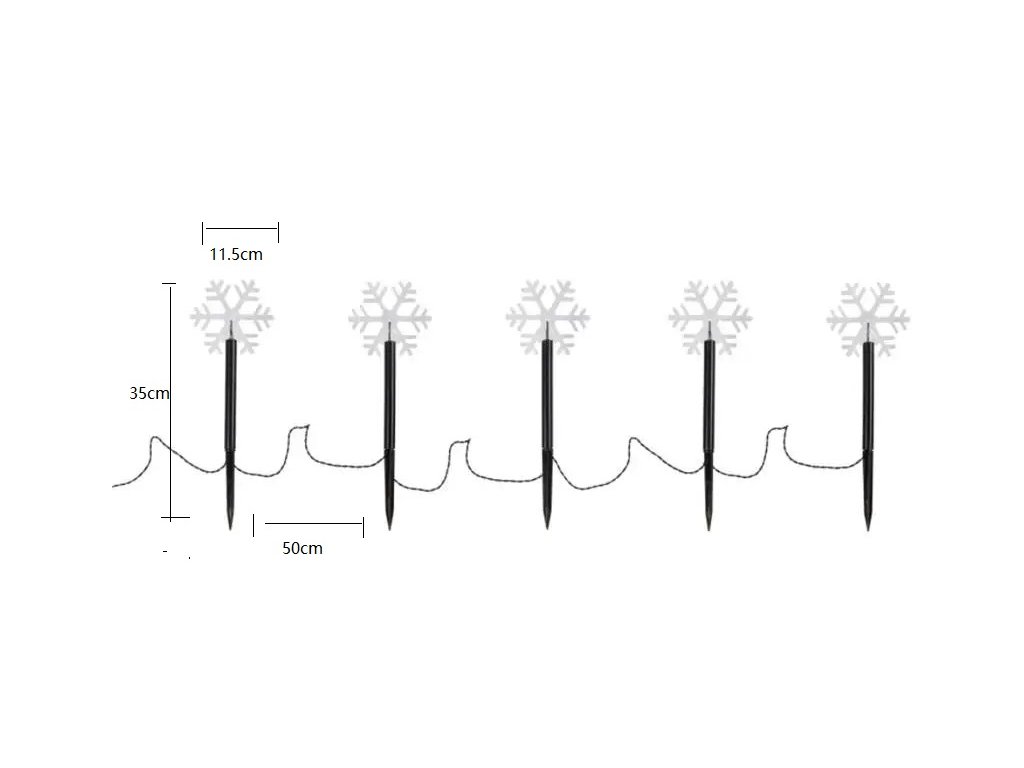 Solární vánoční zapichovací sněhové vločky dodávají zimní pohodu do vánoční výzdoby. S výškou 35 cm a celkovou délkou 2 metry svítí studeným bílým světlem, nabízejí stálé svícení pro klidnou atmosféru nebo záblesky pro jiskřivý efekt. Díky solárnímu napájení jsou šetrné k životnímu prostředí a snadno se umístí v zahradě či na terase. Přineste do svých vánočních oslav nádech elegance a svítivého lesku s těmito krásnými solárními sněhovými vločkami.