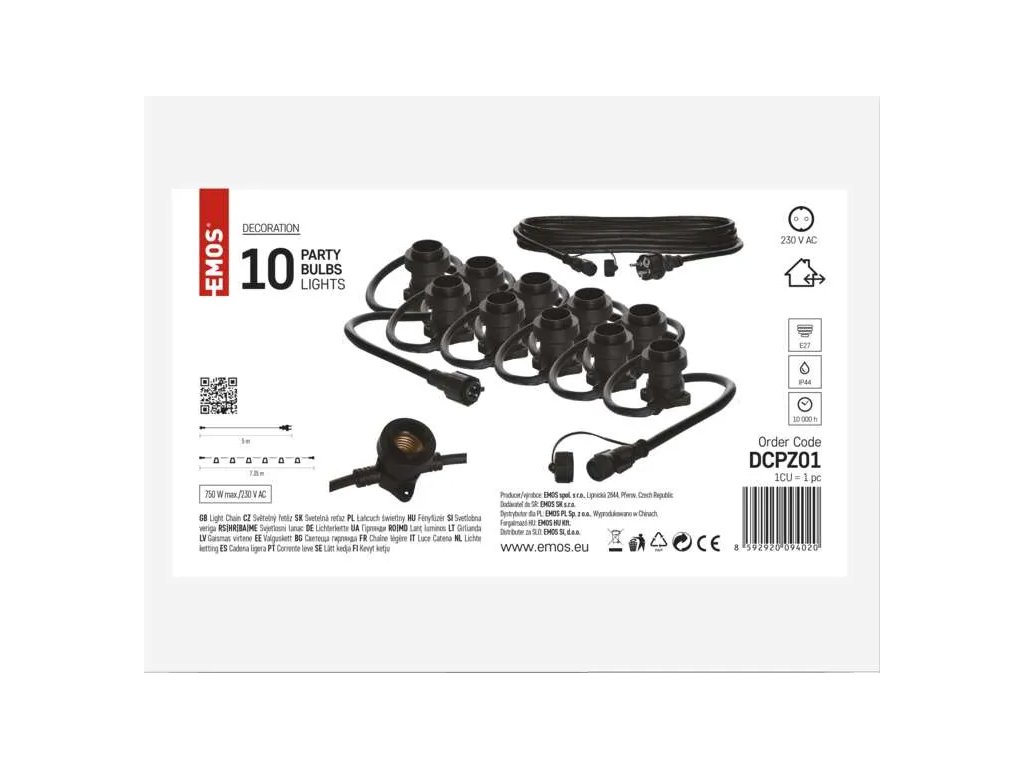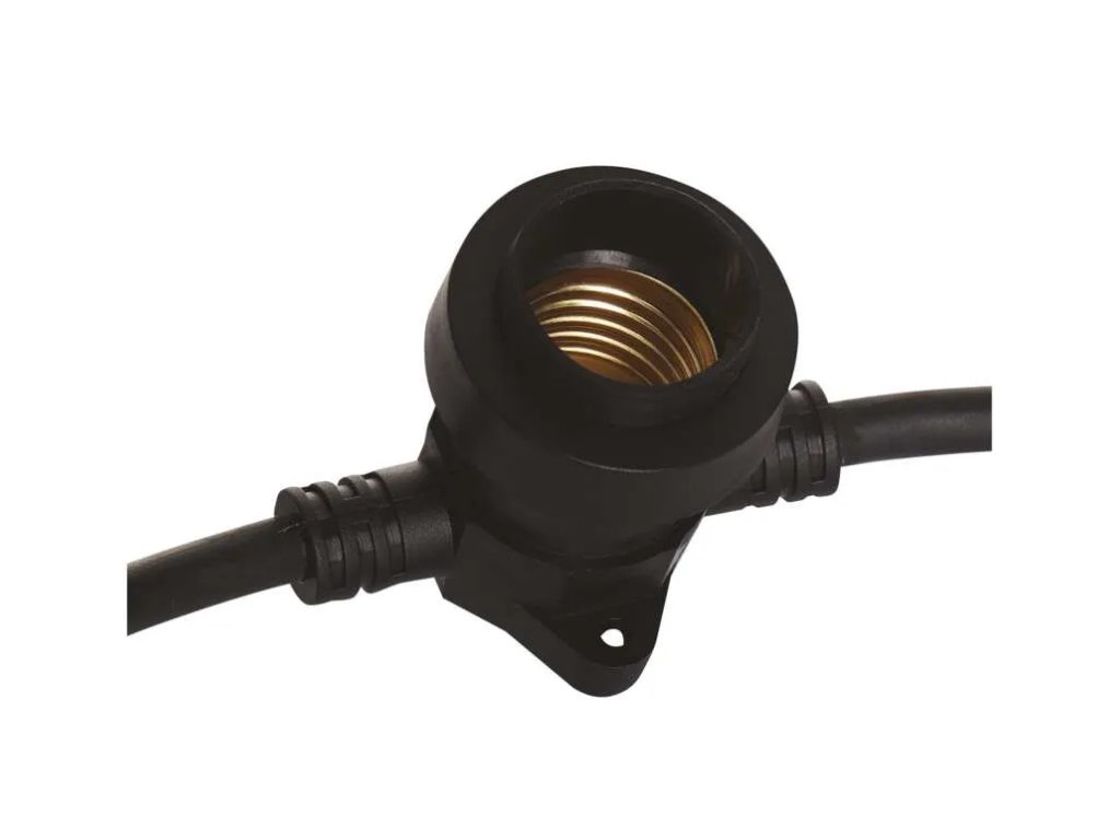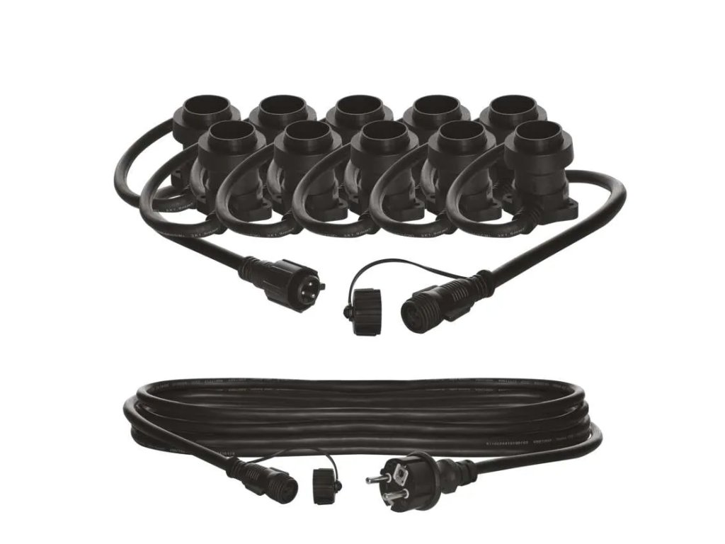 Startovací sada světelného řetězu s paticemi E27 je ideální volbou pro stylové osvětlení balkonů, teras, zahrad, zahrádek i restaurací. Díky univerzálním paticím si můžete zvolit libovolné žárovky až do výkonu 750 W, a jednoduše tak měnit barvu i atmosféru prostoru podle příležitosti. Pevné vodotěsné spojky umožňují rychlé propojení s dalšími řetězy, zatímco gumové těsnění na objímkách zabraňuje průniku vody a zajišťuje vysokou odolnost v exteriéru.
