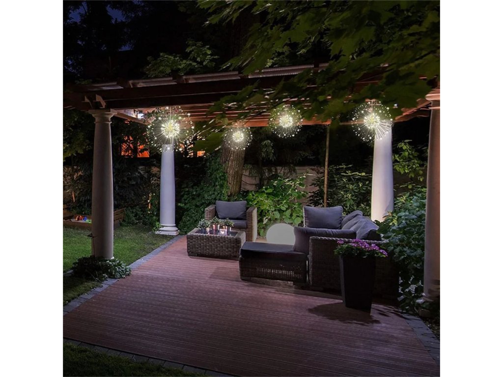 Tento světelný závěs s 10 dekorativními LED ohňostroji je ideálním doplňkem pro každou oslavu či vánoční dekoraci. S délkou 3 m a celkovým počtem 640 LED diod nabízí 8 různých světelných programů, které vám umožní přizpůsobit atmosféru podle vašich přání. Svislé ohňostroje mají délku 26,5 cm a mohou být rozloženy, čímž dosáhnete šířky 27 cm. Přívodní kabel o délce 5 m zajišťuje snadnou instalaci a umístění.