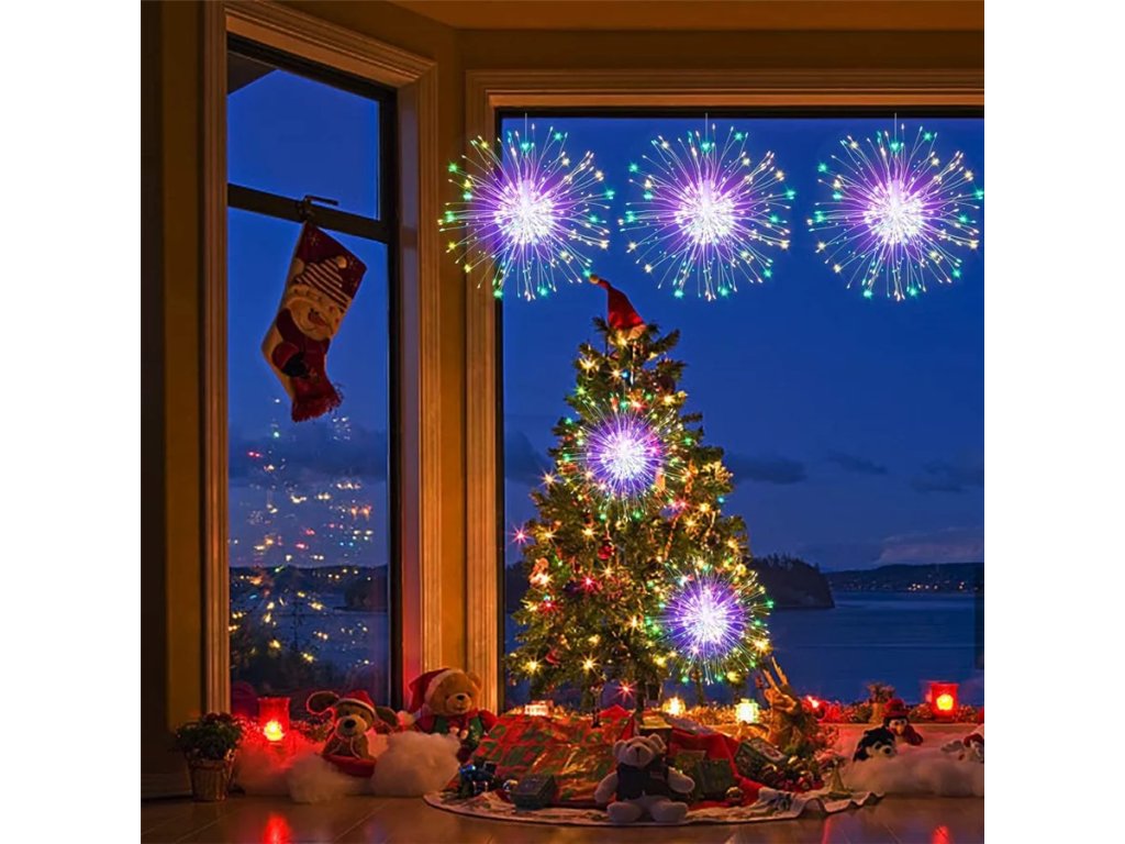 Světelný závěs s 10 dekorativními LED ohňostroji, 3 m, 640 LED diod