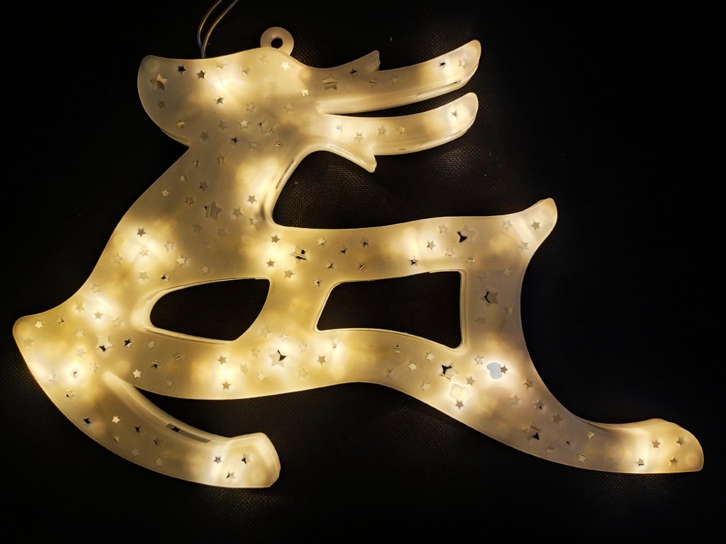 Rozsviťte svůj domov během vánočních svátků s elegantním svítícím sobem z plastu. Teplé bílé světlo krásně prosvítá skrz drobné hvězdičky a vytváří kouzelný efekt, který zútulní každý interiér.
