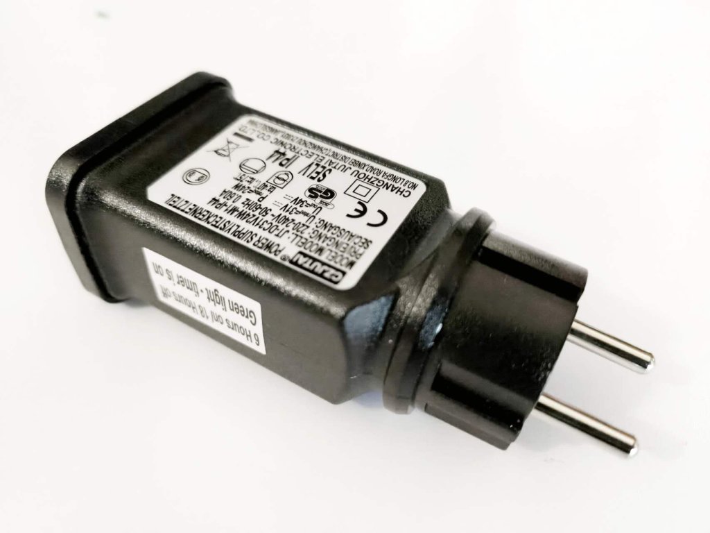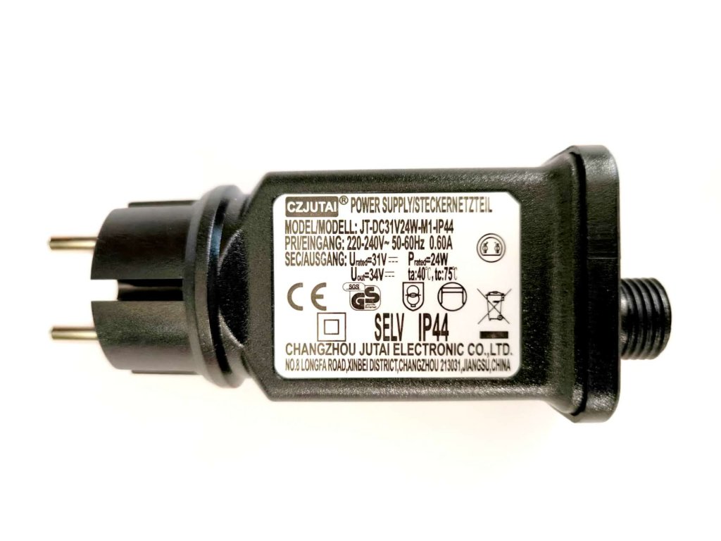 Výkonný transformátor 24 W (JT-DC31V24W-M1-IP44) určený pro propojování více světelných závěsů. Disponuje funkcí paměti a časovačem 6h/18h. Nelze použít samostatně – vyžaduje připojení k přijímači (bílé krabičce). Prodej je určen pouze zákazníkům, kteří u nás zakoupili závěsy a potřebují vyšší výkon.