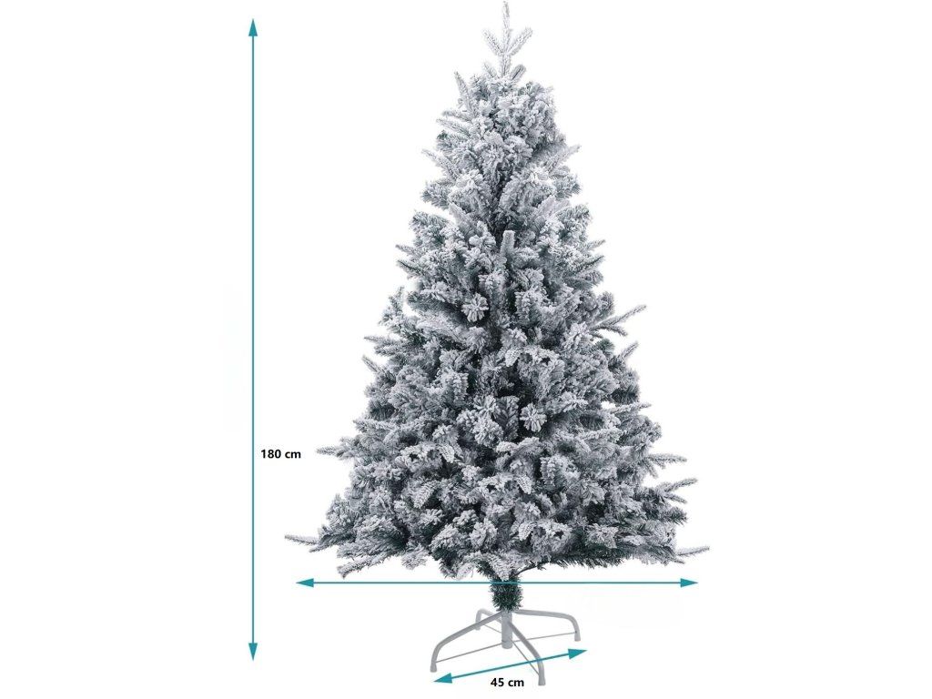 Tento umělý vánoční stromek o výšce 180 cm je dokonale robustní a odolný. Je vyroben z vysoce kvalitního smíšeného materiálu PVC, PE a kovu, což zaručuje dlouhou životnost. Stromek má zasněžený vzhled smrku což přidává do domova vánoční atmosféru. Stojan je součástí balení, což usnadňuje jeho postavení. Tento stromek je ideální volbou pro tradiční vánoční ozdobení.