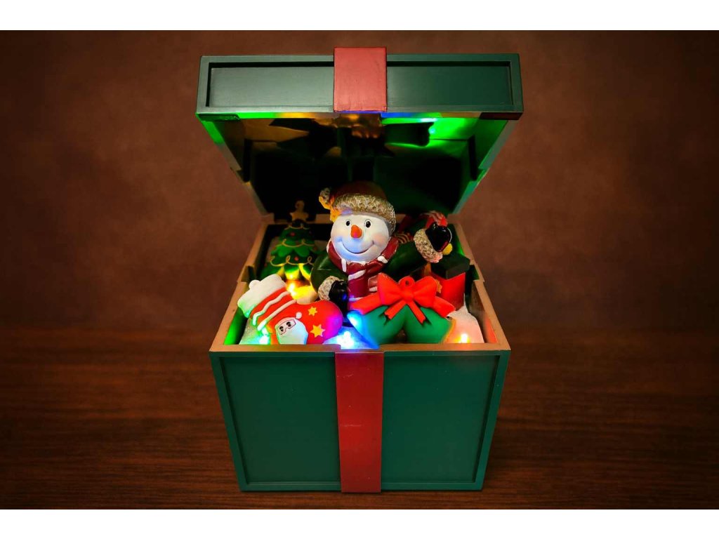 Tato originální vánoční dekorace v podobě dárkové krabičky ukrývá překvapení v podobě veselého sněhuláka, který se po otevření víka rozzáří světly a doprovodí vás příjemnými vánočními melodiemi. Dokonalý doplněk pro vytvoření sváteční atmosféry doma nebo v kanceláři.