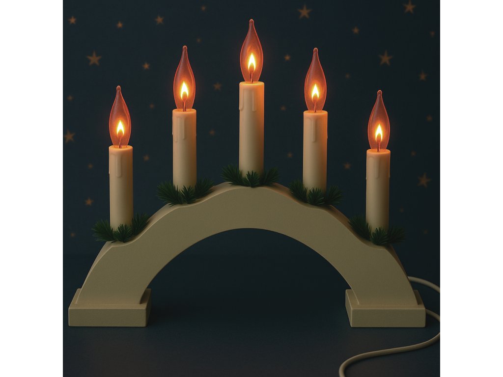 Vánoční dřevěný svícen ve tvaru oblouk, bílá, imitace plamene, 5 svíček