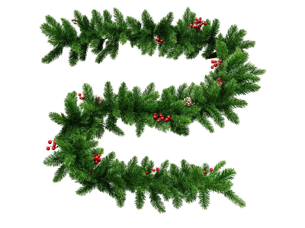 Vánoční girlanda jehličnan 2,7 m, šířka 35 cm – s bobulemi a šiškami