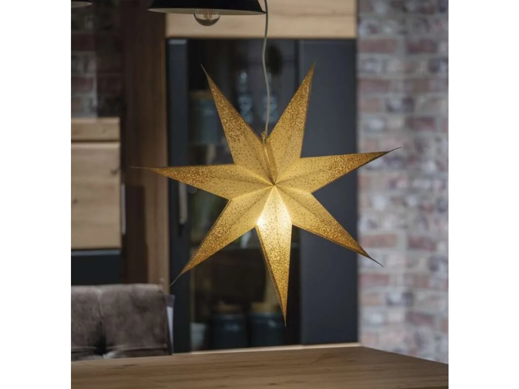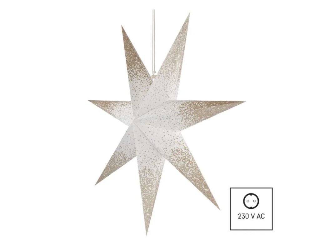 Závěsná vánoční hvězda o průměru 60 cm okamžitě rozzáří váš domov. Je vyrobena z papíru a bavlny, má 3,2m přívodní kabel a patici E14, takže si můžete vybrat libovolnou žárovku. Díky jemným perforacím vytváří krásný světelný efekt a snadno se skládá utažením šňůrky. Ideální dekorace pro útulnou vánoční atmosféru.