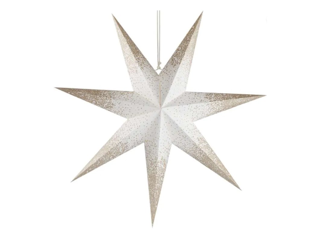 Vánoční hvězda papírová závěsná se zlatými třpytkami na okrajích, bílá, 60 cm, vnitřní