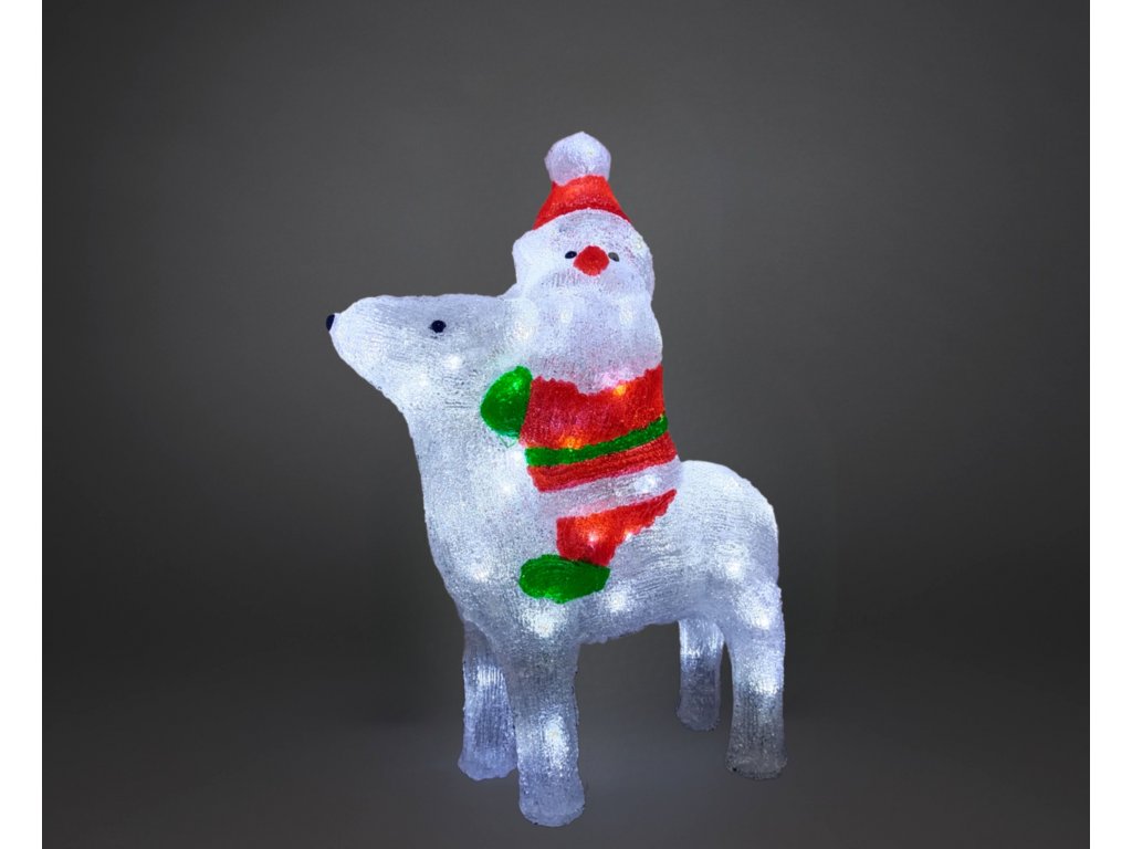 Vánoční LED akrylová dekorace, Santa Claus jezdící na sobovi, studená bílá, 47cm