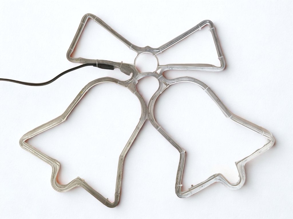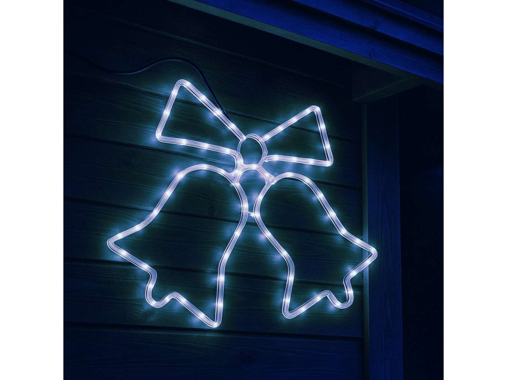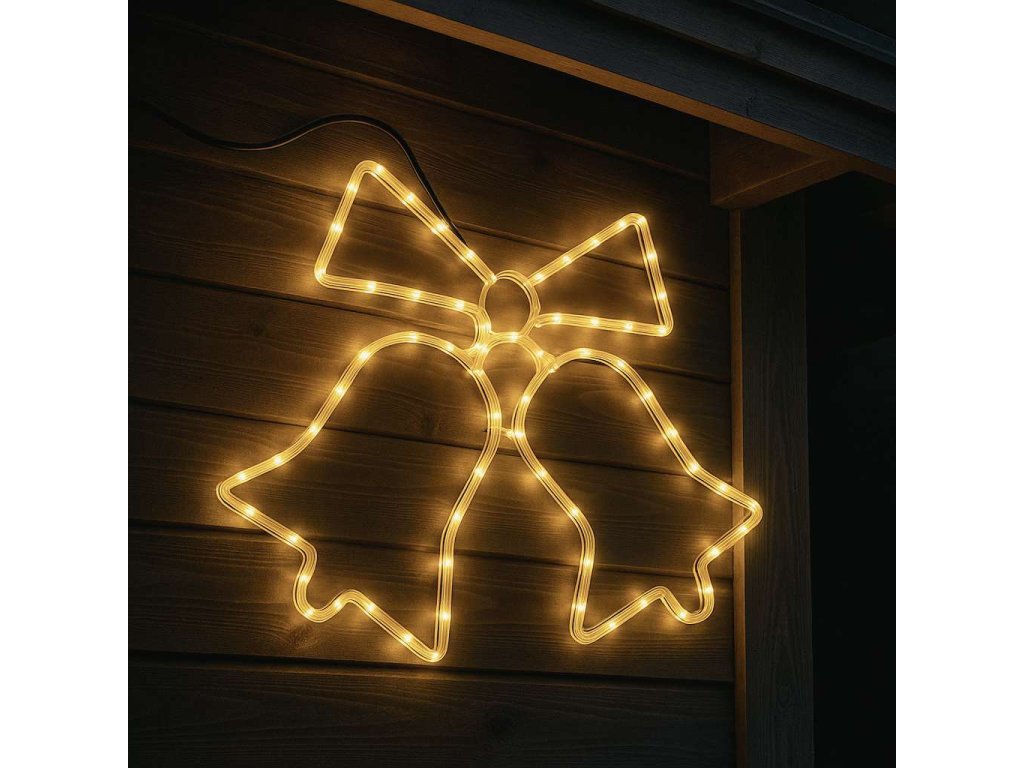 Elegantní vánoční světelná dekorace ve tvaru dvou zvonků svázaných mašlí, která dodá vašemu domu slavnostní atmosféru. Díky teplému bílému světlu a jemnému záření vytváří útulnou a sváteční náladu. Ideální pro umístění pod střechu, na fasádu, balkon nebo do výlohy.
