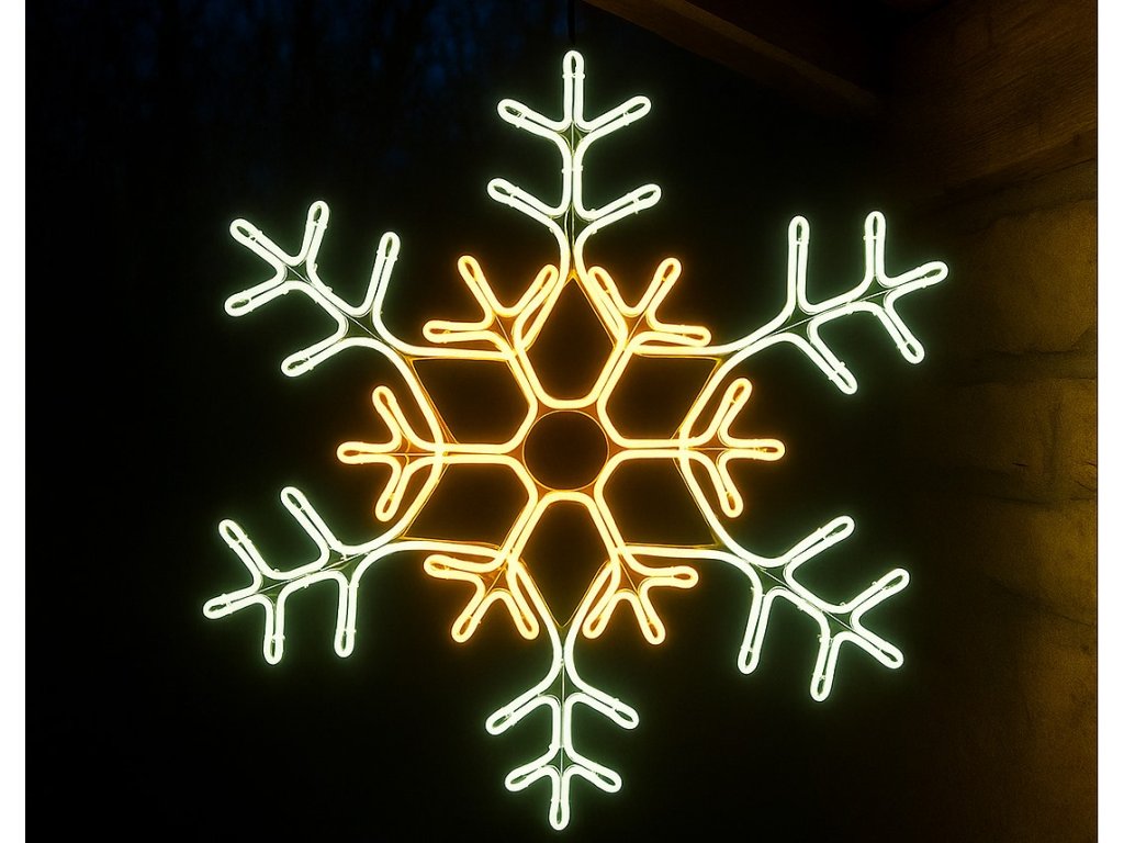 Elegantní svítící dekorace ve tvaru sněhové vločky o průměru 70 cm se stane nepřehlédnutelným prvkem vaší sváteční výzdoby. Kombinace teplé bílé a studené bílé barvy vytváří jedinečný kontrast a navodí tu pravou vánoční atmosféru.