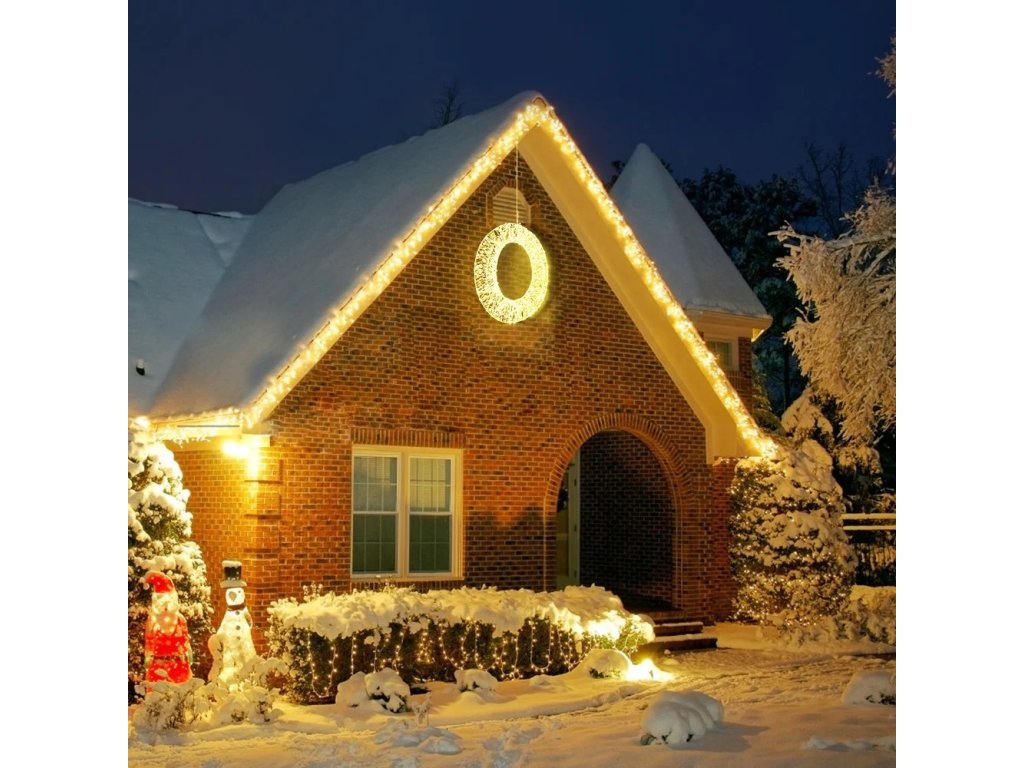 Elegantní LED kruh s teplým bílým světlem rozzáří vchodové dveře, okna či interiér a vytvoří útulnou sváteční atmosféru. Díky odolné plastové konstrukci a krytí IP44 je vhodný pro vnitřní i venkovní použití. Energeticky úsporné LED diody zajistí jemné, hřejivé světlo po celou dobu Vánoc.