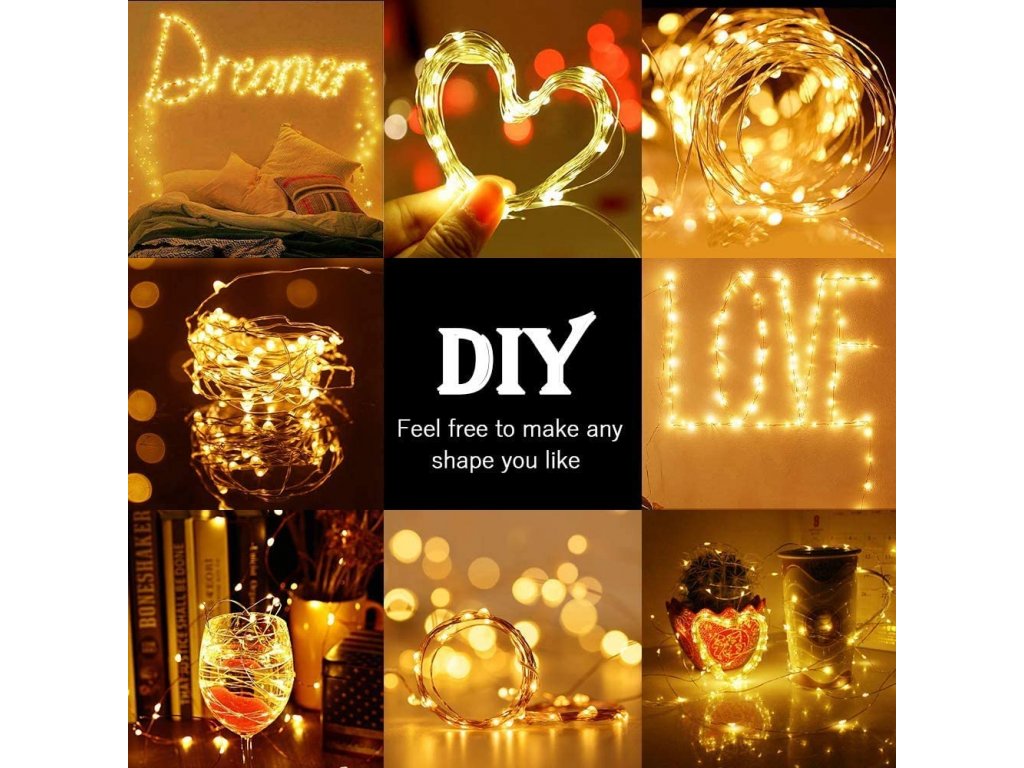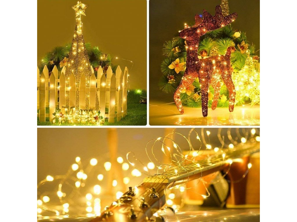 Tento vánoční mikro řetěz je dlouhý 5 metrů a vydává teplé bílé světlo. Je vhodný pro venkovní použití a obsahuje LED osvětlení bez záblesku. Jeho konstrukce kombinuje kov a plast, a díky ohebnému drátku můžete vytvořit různé dekorace podle své fantazie. Řetěz je určen pro použití jak uvnitř, tak venku a je letošním velkým hitem v oblasti vánoční výzdoby.
