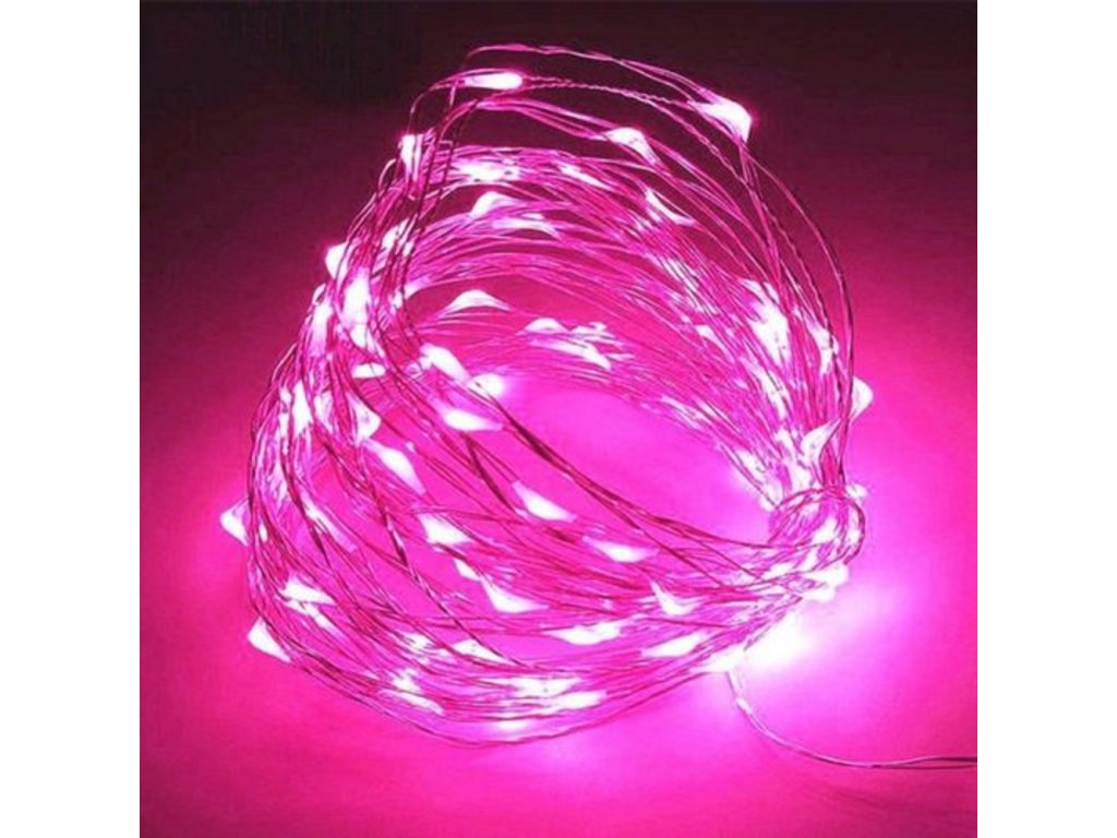 Vánoční mikro řetěz na baterie, růžová, 2m, na baterie