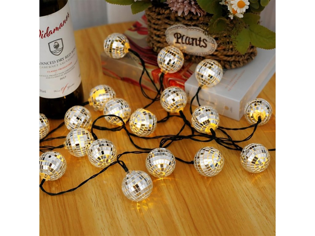 Vánoční řetěz s 20 skleněnými koulemi, 5m, teplá bílá