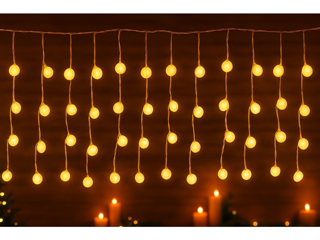 Rozjasněte svůj domov stylovým vánočním osvětlením. Tento vánoční světelný závěs s 48 koulemi je ideální pro ozdobení oken, stěn, pergol nebo vánočních party. Elegantní LED světýlka vytvářejí útulnou sváteční atmosféru a promění každé místo ve slavnostní dekoraci.
