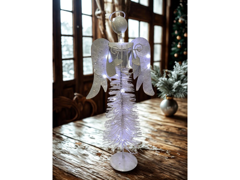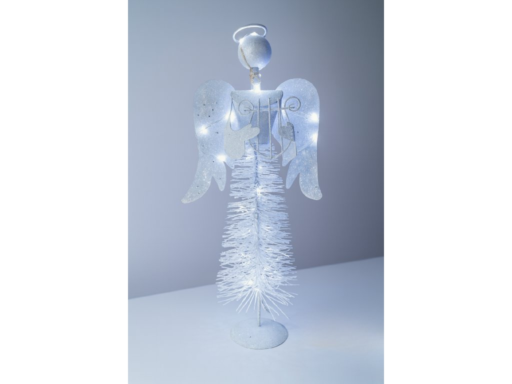 Tento vánoční svítící kovový anděl s harfou přináší do vašeho domova zářivou atmosféru. Svítí studenou bílou světlem s možností trvalého svícení nebo režimu 6 hodin zapnuto / 18 hodin vypnuto. Napájení je zajištěno bateriemi. Tento celokovový anděl má křídla a třpytící efekt, který dodá vánočnímu prostoru kouzelný vzhled.