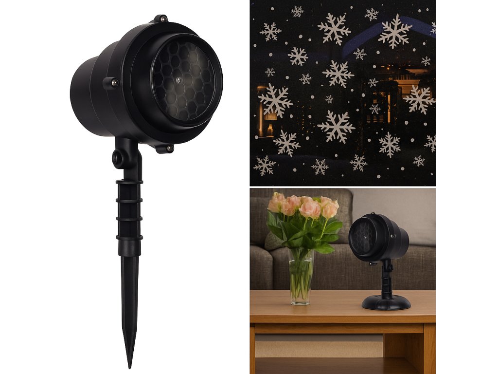 Venkovní dekorativní LED projektor – rotující motiv sněhových vloček a bílých teček