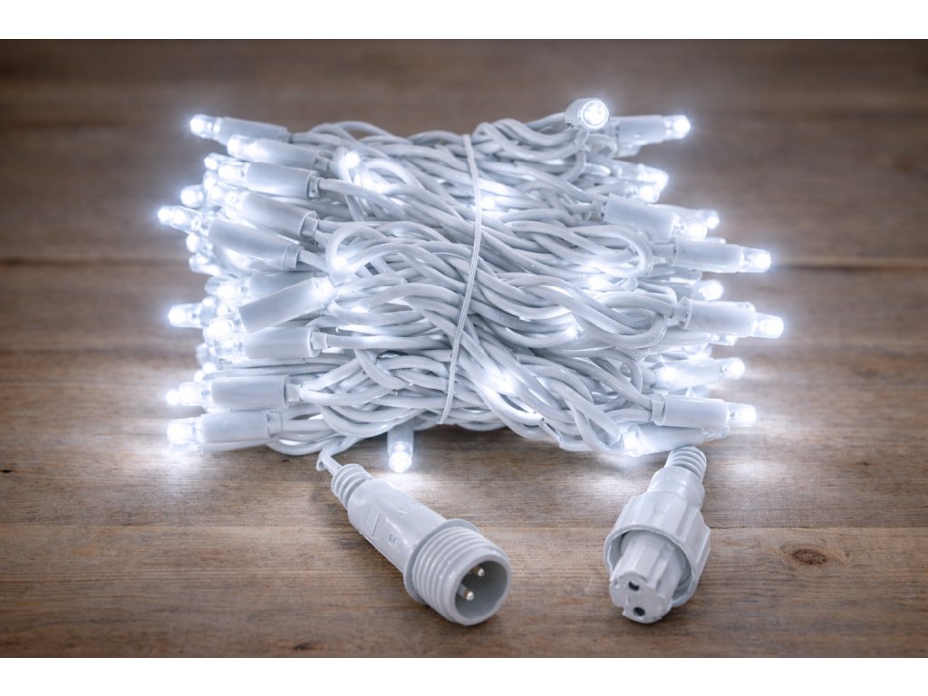Venkovní LED vánoční řetěz PROFI, bílý kabel, studená bílá, 10m, 100 LED