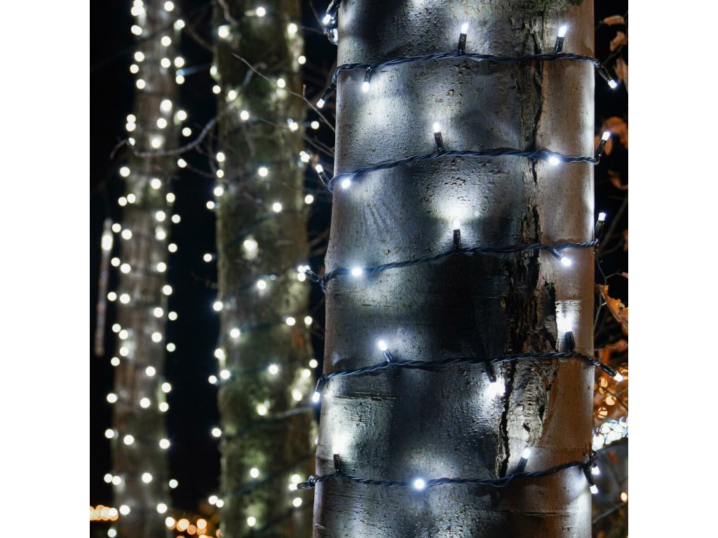 Tento venkovní LED vánoční řetěz řady PROFI ve studené bílé barvě se záblesky ve studené bílé barvě je ideální pro krásnou dekoraci exteriéru. S délkou 10 m a 100 LED diodami disponuje robustním designem díky silnému propletenému kabelu. Tloušťka LED diody činí 0,6 cm, což zajišťuje odolnost. Řetěz má ochranu IP 44, takže je vhodný pro venkovní použití. Nabízí pouze stálé svícení a je propojovatelný až do délky 100 m, což umožňuje flexibilní uspořádání.