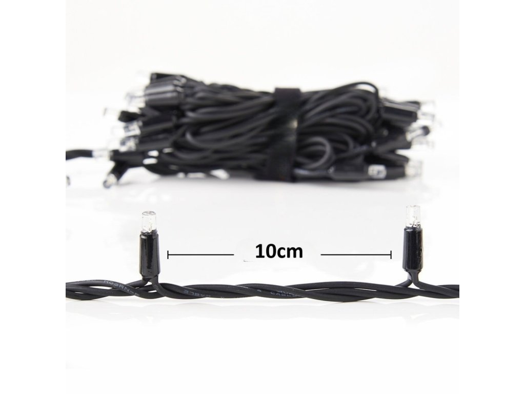 Venkovní LED vánoční řetěz PROFI, černý kabel, studená bílá se záblesky, 10m, 100 LED