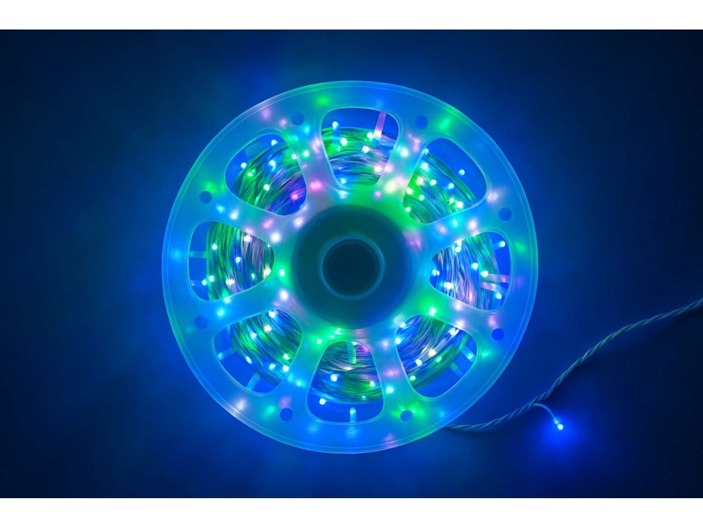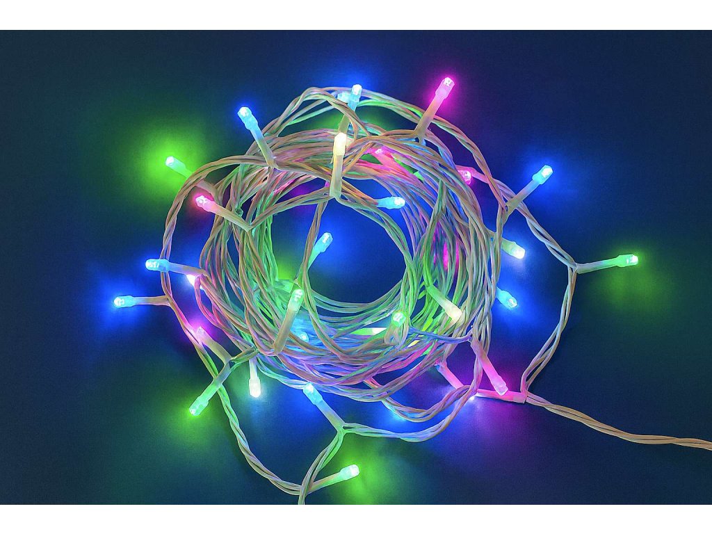 Venkovní LED vánoční řetěz - různobarevná, 100m, 1000 LED, bílý kabel