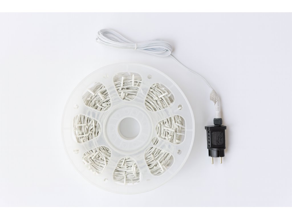 Venkovní vánoční řetěz s LED diodami v studené bílé barvě o délce 100 metrů a 1000 LED diodami. Nabízí 8 různých světelných programů.Tento elegantní řetěz s nekonečnými možnostmi osvětlení dodá vašemu exteriéru nádherný vánoční vzhled. Studená bílá barva symbolizuje čistotu a kouzlo vánočního období.