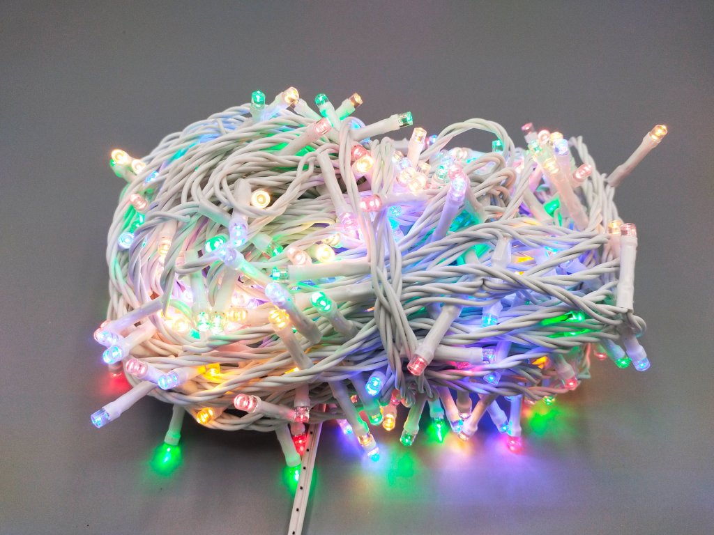 Venkovní vánoční LED řetěz, různobarevná, bílý kabel, 30m, 300 LED