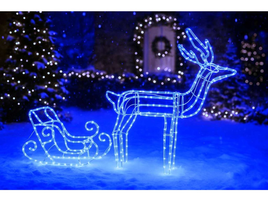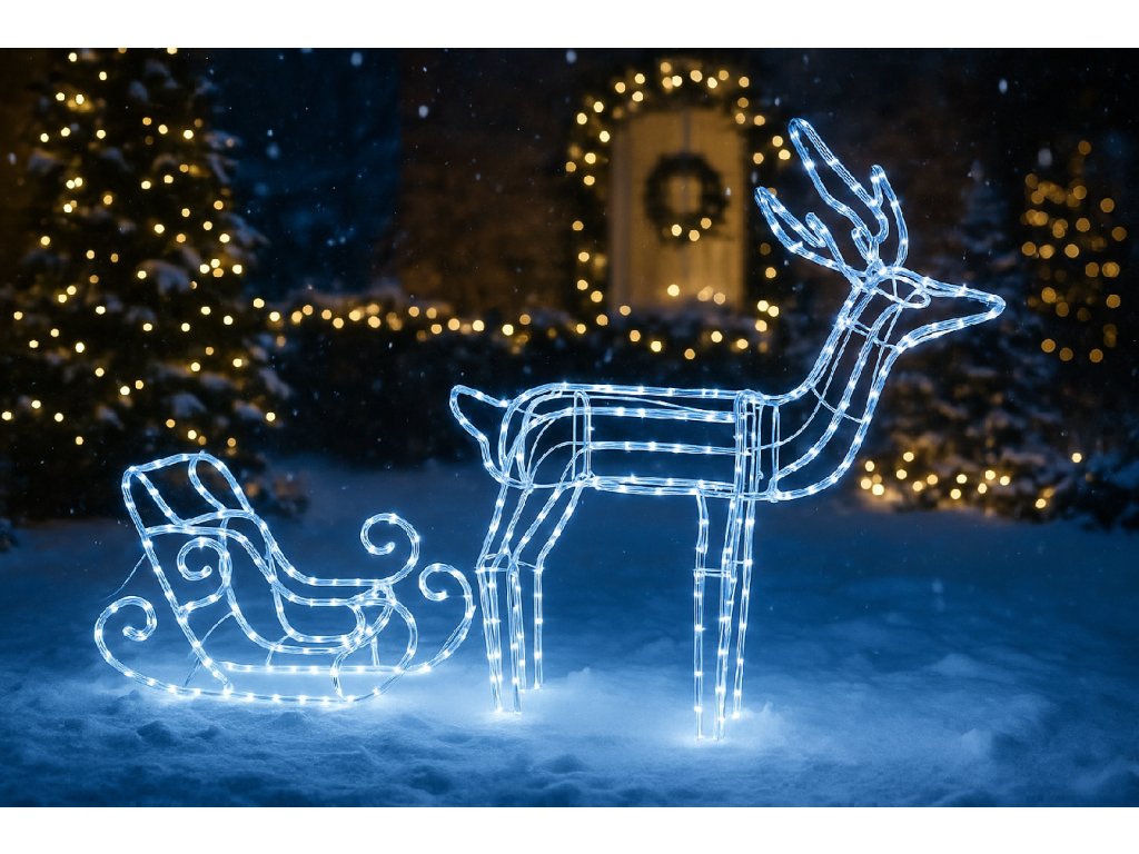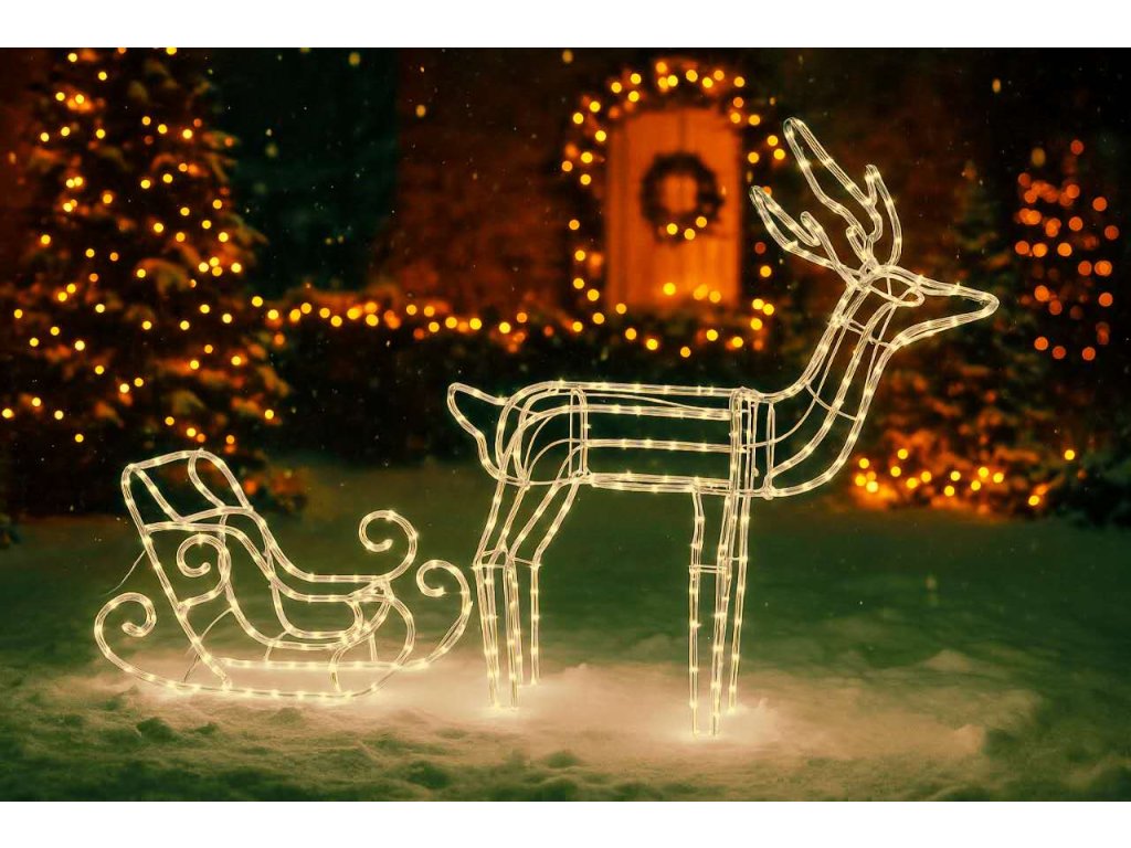 Rozzařte svou zahradu či terasu vánoční atmosférou! Tento elegantní svítící sob s pohyblivou hlavou a samostatnými sáněmi vytvoří kouzelnou zimní dekoraci. Kovová konstrukce s odolnou světelnou hadicí zajišťuje dlouhou životnost i při venkovním použití. Sob má realistický tvar a pohyblivou hlavu, která dodává dekoraci živý dojem. Sáně jsou samostatné, takže je můžete umístit dle vlastní fantazie.