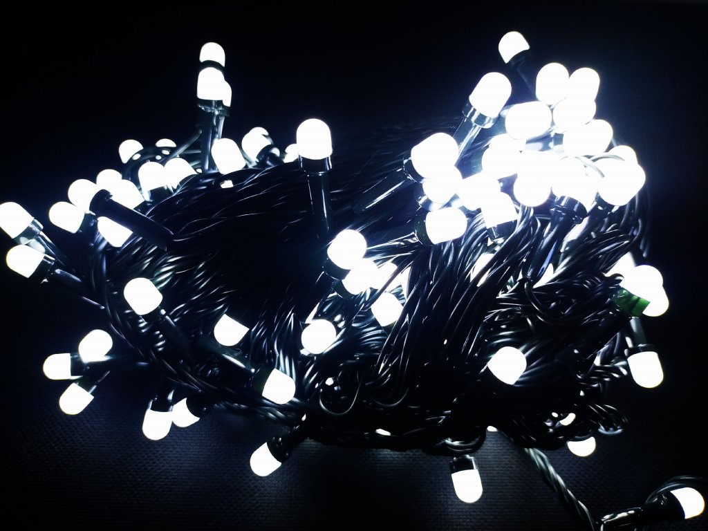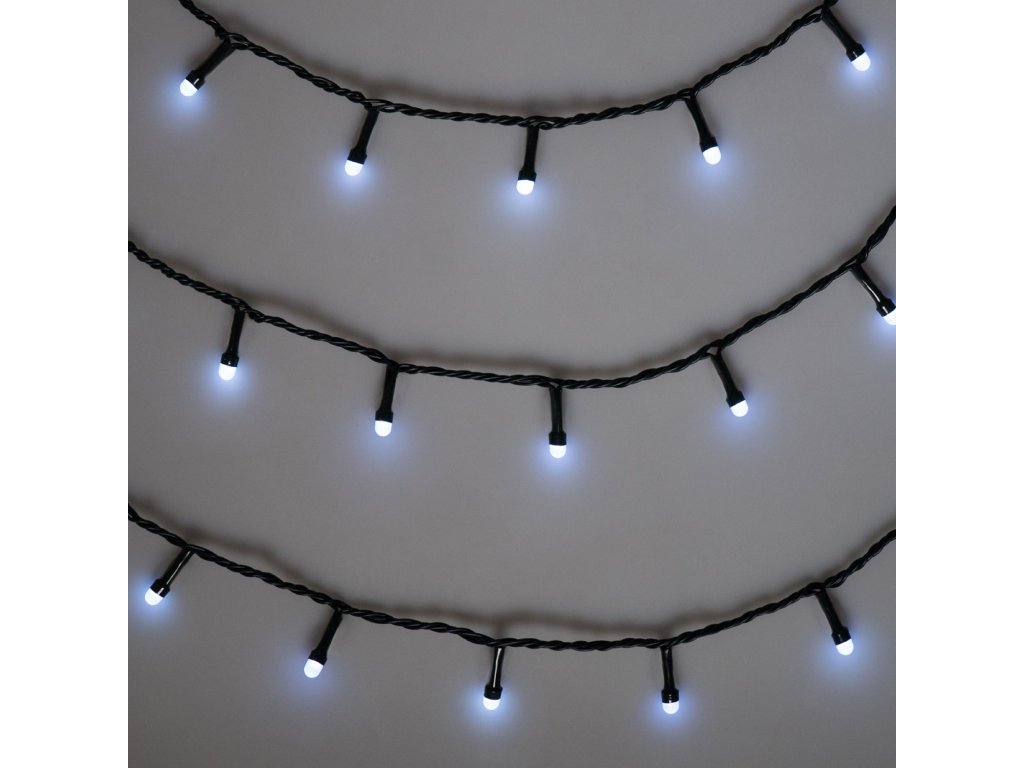 Vnitřní LED vánoční řetěz s 7mm kulatými diodami, studená bílá, 10 m, 100 LED