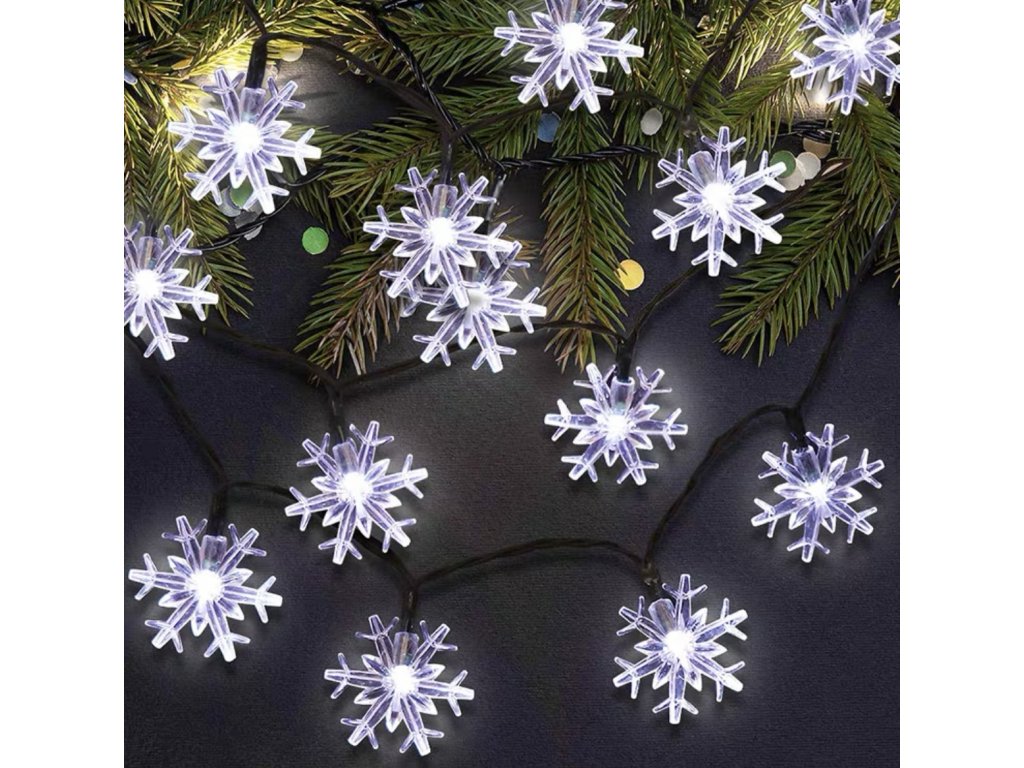 Vnitřní LED vánoční řetěz se sněhovými vločkami v chladné bílé barvě na 3metrovém kabelu s 28 LED diodami dodá vašemu interiéru zimní kouzlo. Sněhové vločky symbolizují jedinečnost a krásu zimního období. Studená bílá barva evokuje čistotu a zimní atmosféru, což vytvoří chladně elegantní prostředí pro vaše Vánoce. Řetěz má pouze stálé svícení.