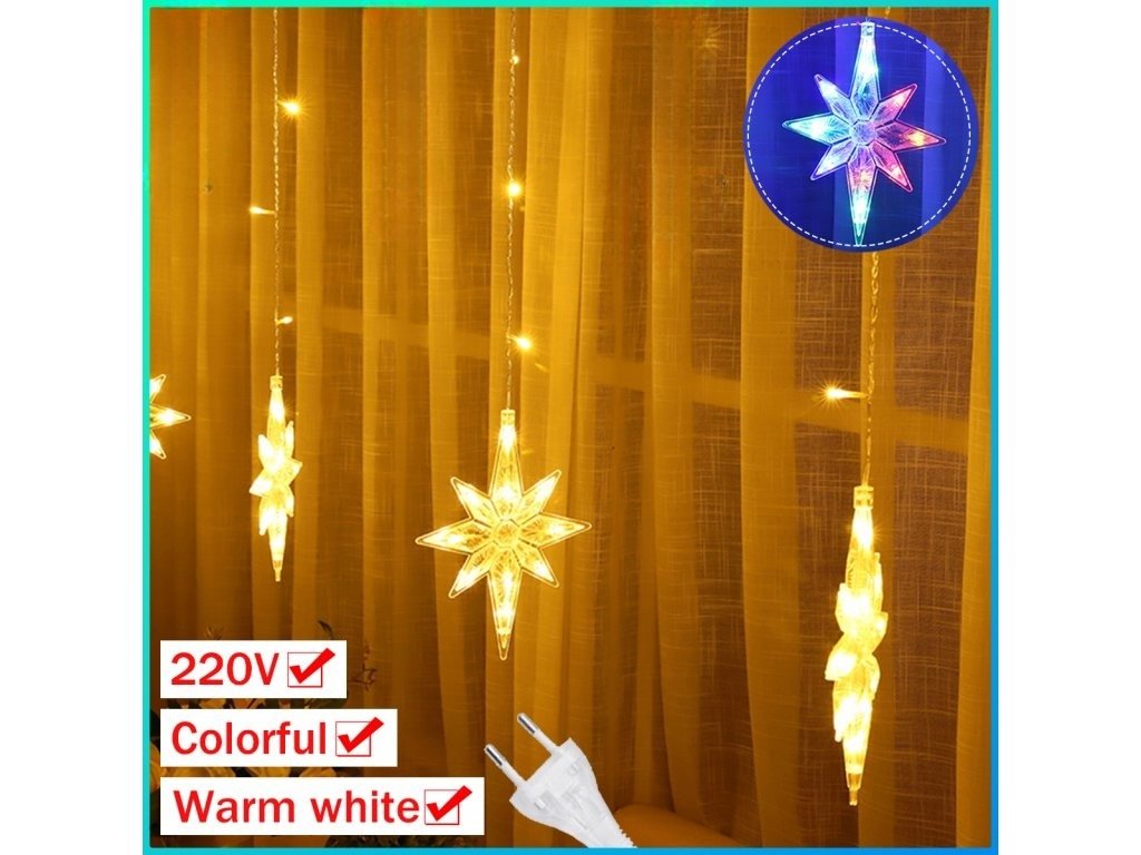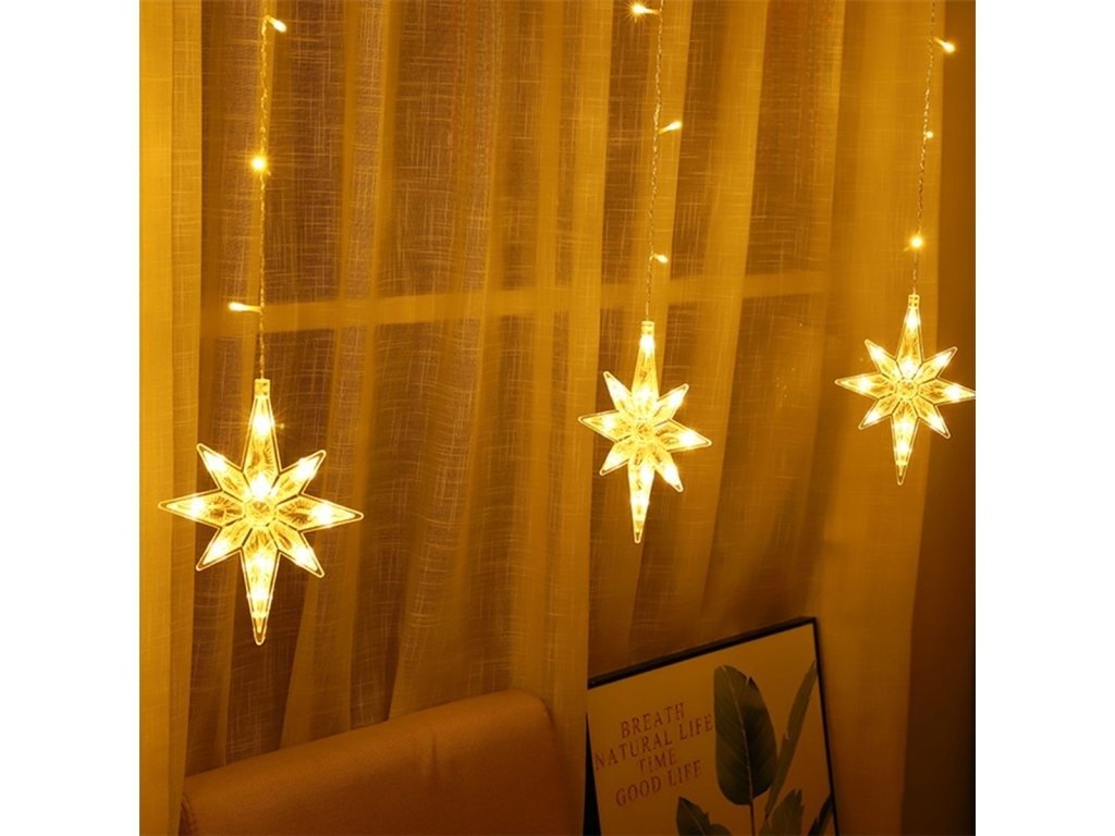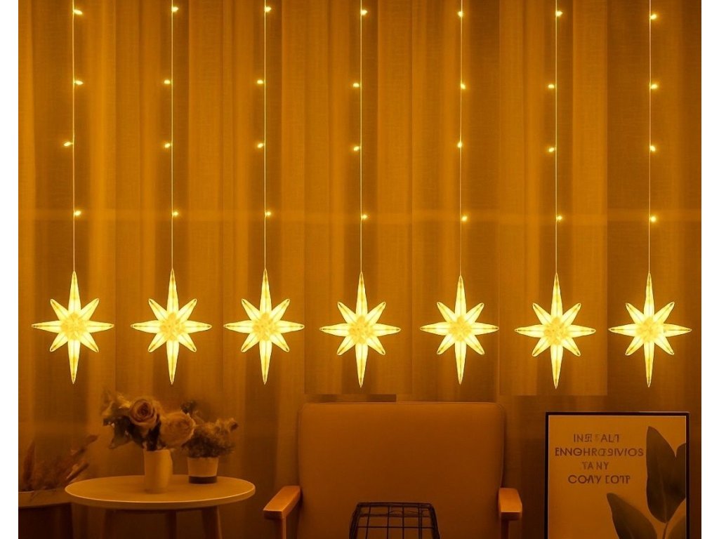 Tento vnitřní vánoční LED závěs s osmicípými hvězdami nabízí kouzelné osvětlení pro váš domov. S délkou 3 metry a 138 LED diodami zajišťuje výrazný efekt. Závěsy jsou propojovatelné, což umožňuje snadné rozšíření osvětlení propojením s dalšími řetězy z této řady. Celkem 8 osmicípých hvězd dodá vaší vánoční výzdobě zvláštní nádech elegance a krásy.