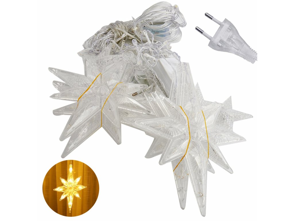 Vnitřní LED vánoční závěs - Osmicípé hvězdy , 3m, 138 LED, různé barvy na výběr